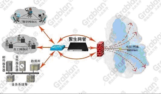 如图:领导上网和服务器、业务系统等主机的公网流量不经过聚生网管监控设备