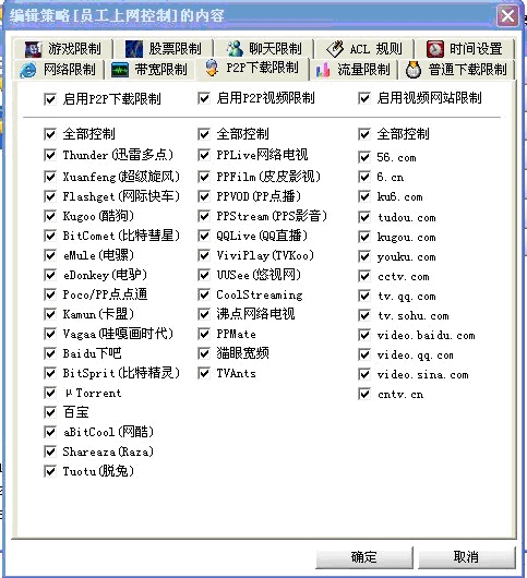 二、限制局域网P2P下载、禁止P2P视频、限制网页视频
