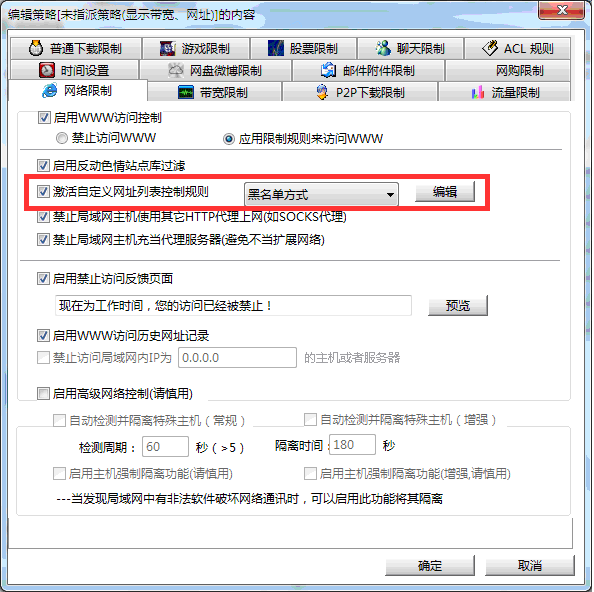 图:聚生网管网站黑名单 屏蔽游戏网站、限制视频网站