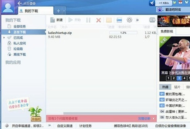 被过滤的主机在打开迅雷下载后,迅雷下载速度每秒就只有几KB了,彻底杜绝局域网内使用迅雷下载,让网络无线畅通。