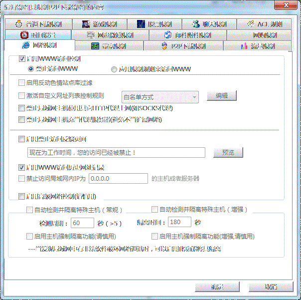 此外,聚生网管作为国内上网行为管理专家,可以对电脑实现限制网速、禁止P2P下载、限制聊天软件、游戏软件等等一系列可能影响正常工作的娱乐行为。软件独有的网络日志可以详细记录访问的网址及程序帮助管理者实现更为精确的网络管控。
