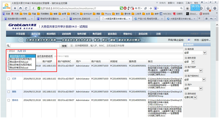 3、根据IP或MAC地址来查询局域网主机对那些共享文件做了那些具体操作。