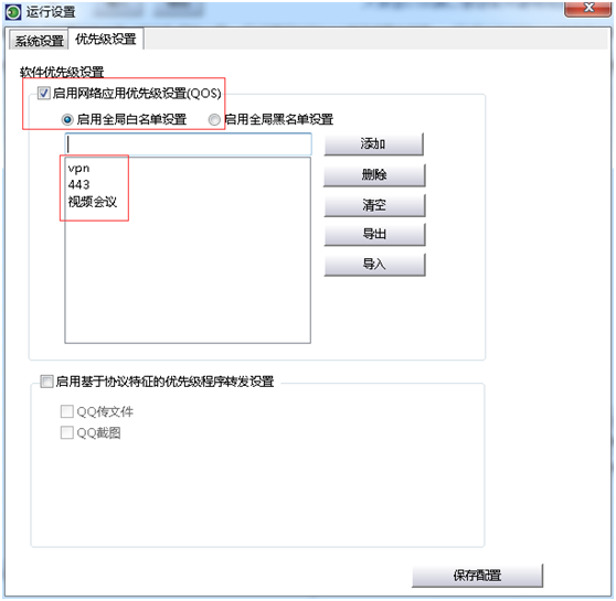 图:启用“网络应用优先级设置”实现关键应用的带宽保证