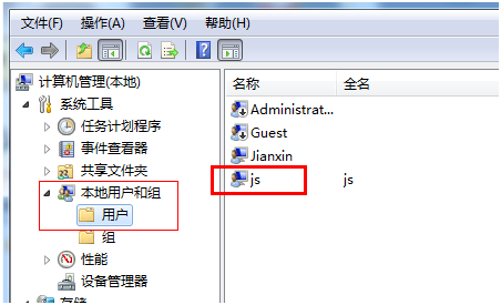 1、在我的电脑上右键,点击管理(G),然后在本地用户和组里面添加一个用户(我添加的名字就叫js吧)。