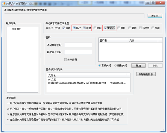 图:可以创建、重命名和修改共享文件而禁止删除共享文件。