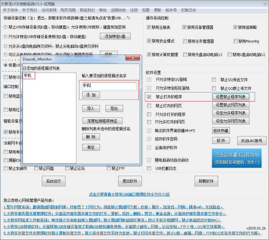 图:电脑USB接口管理软件、禁止电脑手机无线传送文件软件