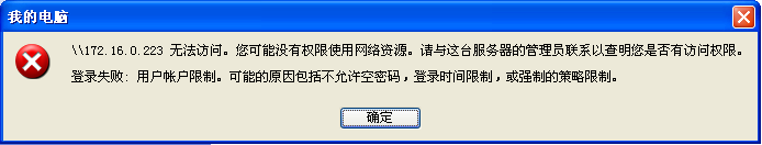 6、有登录窗口,知道某XP的管理员用户名,密码为空(XP在安装时建立用户不提示建立密码),但不能登录。总是出现“用户帐户限制”的错误提示,登录终端服务也出现类似提示。