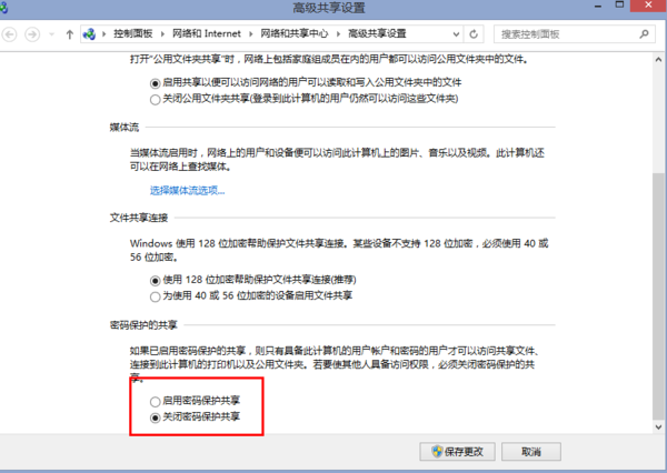 则解决方法:打开Win7,右击网络邻居-更改高级共享设置,找到“密码保护的共享”,将其改为“关闭密码保护的共享”,如下图所示: