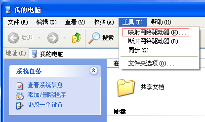 现在,在“Windows资源管理器”中的文件夹窗格中,你就可以看到所创建的映射驱动器(共享文件夹)以及你的计算机上的所有其他驱动器了。要断开网络驱动器,请在“Windows资源管理器”窗口的“工具”菜单上单击“断开网络驱动器”命令即可。