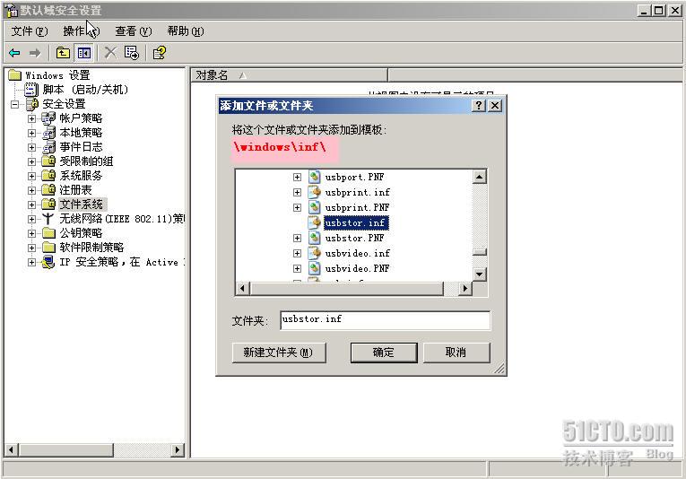 通过组策略,在管理工具――域安全策略――计算机配置――WINDOWS设置――安全设置――文件系统,单击右键――添加文件或文件夹。找到c:\windows\inf\usbstor.inf 和usbstor.pnf,并添加之