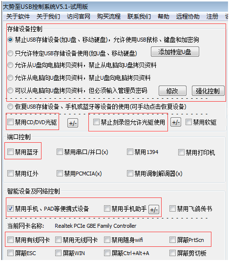 图:大势至USB端口管理软件界面