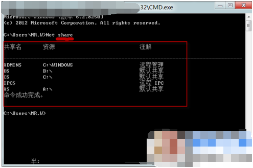 然后再光标处输入对应指令“Net share”单机“Enter”键即完成命令操作。