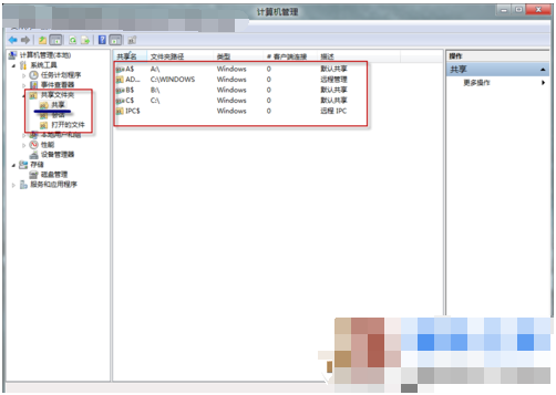 以上介绍的两种方法,较早种较为直观却又单一,第二种命令符方式虽然全面,查找文件是却不是很方便,接下来,小编为大家介绍一种鱼和熊掌兼得的方法,使用计算机管理器中的共享文件夹来完成操作。