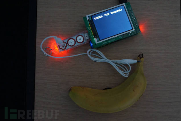 丹麦网络工程师Stefan Milo利用一块“Makey Makey”电路板连接到香蕉以及树莓派,并将它们固定在一块玻璃板上面,这个装置的成本低于100美元,却可以为使用者带来一种截然不同地获取WiFi密码体验。
