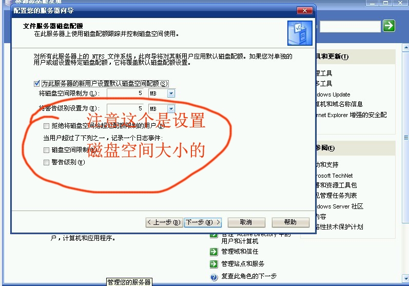 这个图示关于为每一个用户分配磁盘空间大小和磁盘空间限制的