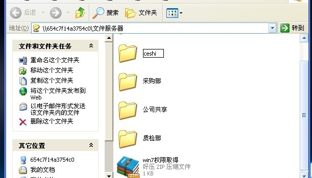 现在我们已经看到文件服务器上的共享文件夹了。双击,出现如下画面。