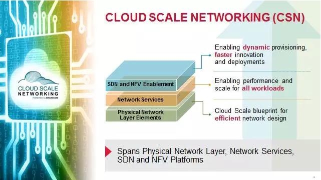 云级网络有三个要素,分别是物理网络层、网络服务和SDN及NFV平台支持。物理网络层要素可为高效率网络设计提供蓝图。低成本网络服务可实现高性能并可针对所有工作负载进行扩展,而SDN和NFV则可实现动态服务配置和更快的创新与部署。