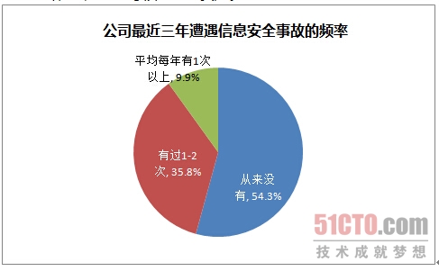 ◆ 超过45%的企业在过去三年曾发生过不同量级的信息安全事故,仅有15%的企业认为自己的安全措施完全可以防范风险