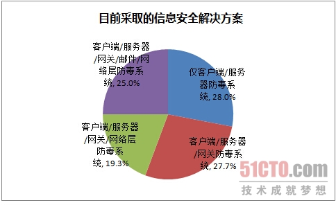 而目前仅有15%的企业认为自己的安全措施可以完全防范风险,但仍然只有25%的企业拥有“客户端/服务器/网关/邮件/网络层防毒系统”多层面的防护系统。