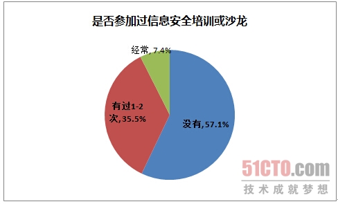 ◆ 有57%以上的安全从业者并未参加过相关的信息安全培训或沙龙
