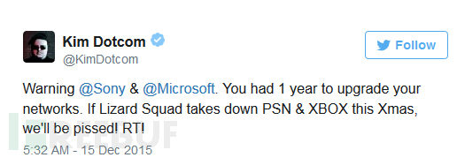 于是今年,Dotcom在推特上已经向索尼和微软发出了警告称: