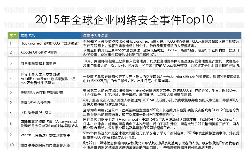 图:2015年全球企业网络安全事件Top10