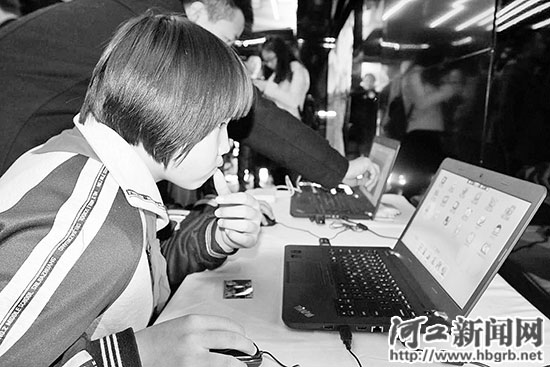 学生在安全战车里体验安全桌面。据了解,为了让全国的青少年有机会体验网络安全宣传车的魅力,该车将在2016年开到全国10余个省市进行巡展,向当地的青少年有效传播网络安全知识,帮助他们亲身体验网络安全内容,切实提升网络安全意识,引起社会对青少年网络安全教育的高度重视。1月14日,“青年之声·美丽河北 青少年网络安全中国行”在石家庄市启程,宣传车将抵达西柏坡、正定、衡水、沧州等城市,在我省开展为期两周的巡展活动。