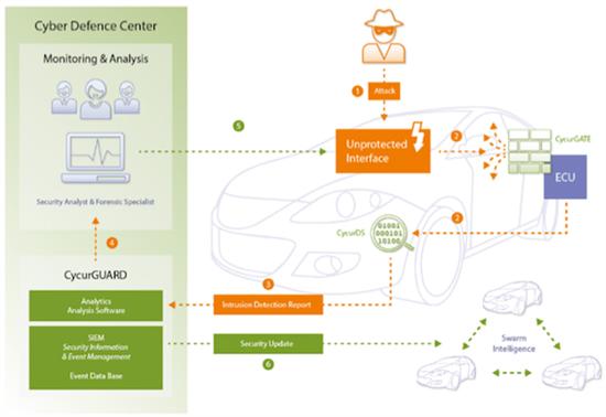 前面提到,中央网关要起到的一些作用,包括入侵检测和防火墙等。那么作为系统来说,该如何辨别异常行为是入侵导致的还是系统本身出了问题,又或者是驾驶员的误操作?Escrypt的这套方案——Intrusion Detection and Prevention Solution,简称IDPS,就是要起到这个作用。